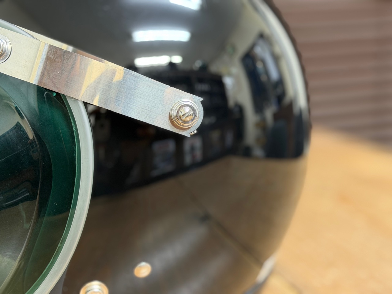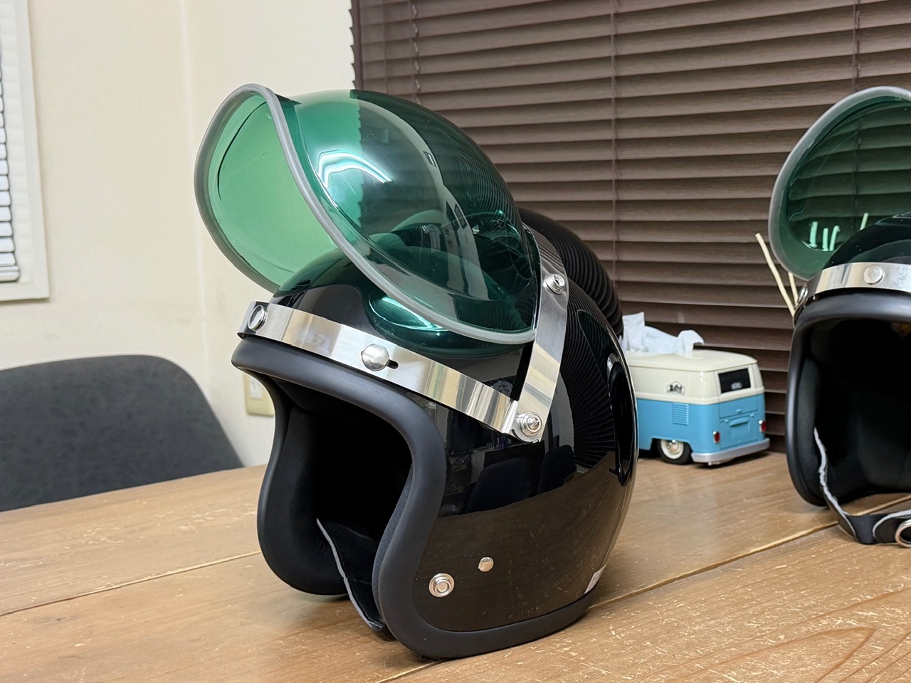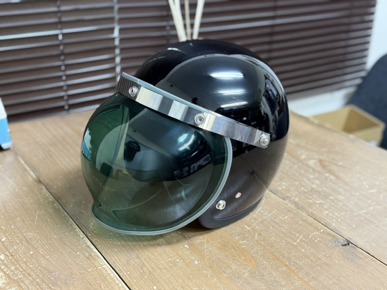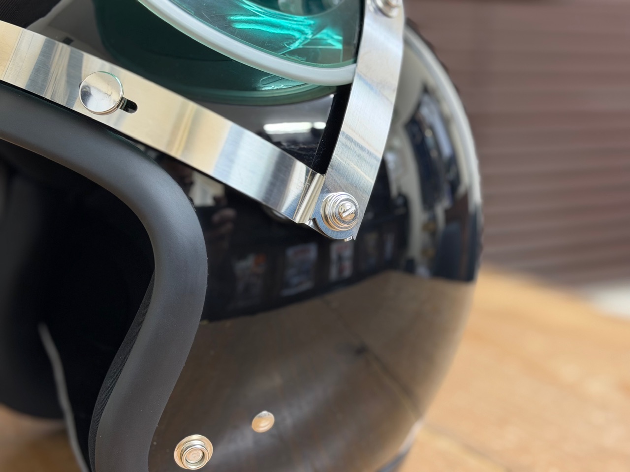 両側のスライドスナップが位置調整できるのでほとんどのジェットヘルメットに取り付けできるのではないでしょうか。