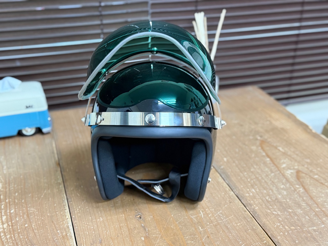 現在販売されているグリーンシールドでこの様な雰囲気のある色具合や形状の物は無いと思います。